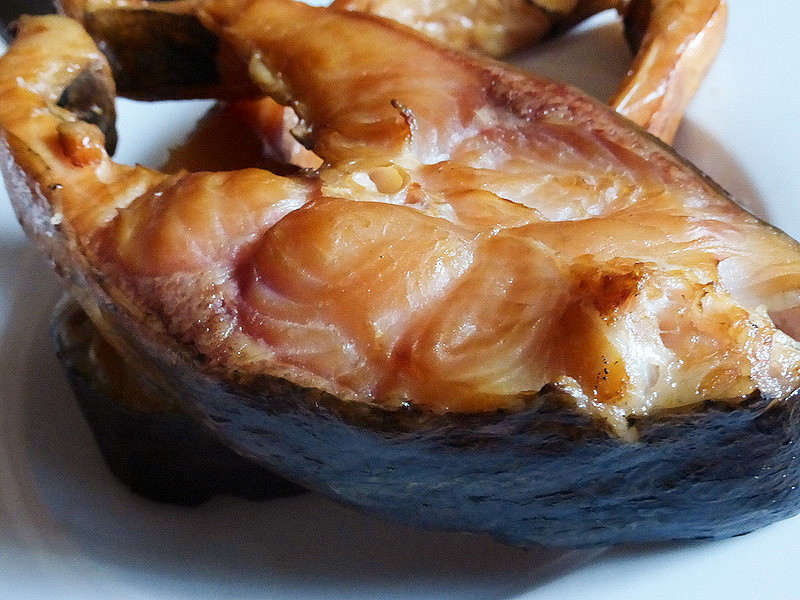 Uzený tolstolobik má úžasné maso. Příjemně tučné, s pevnějšími vlákny.
