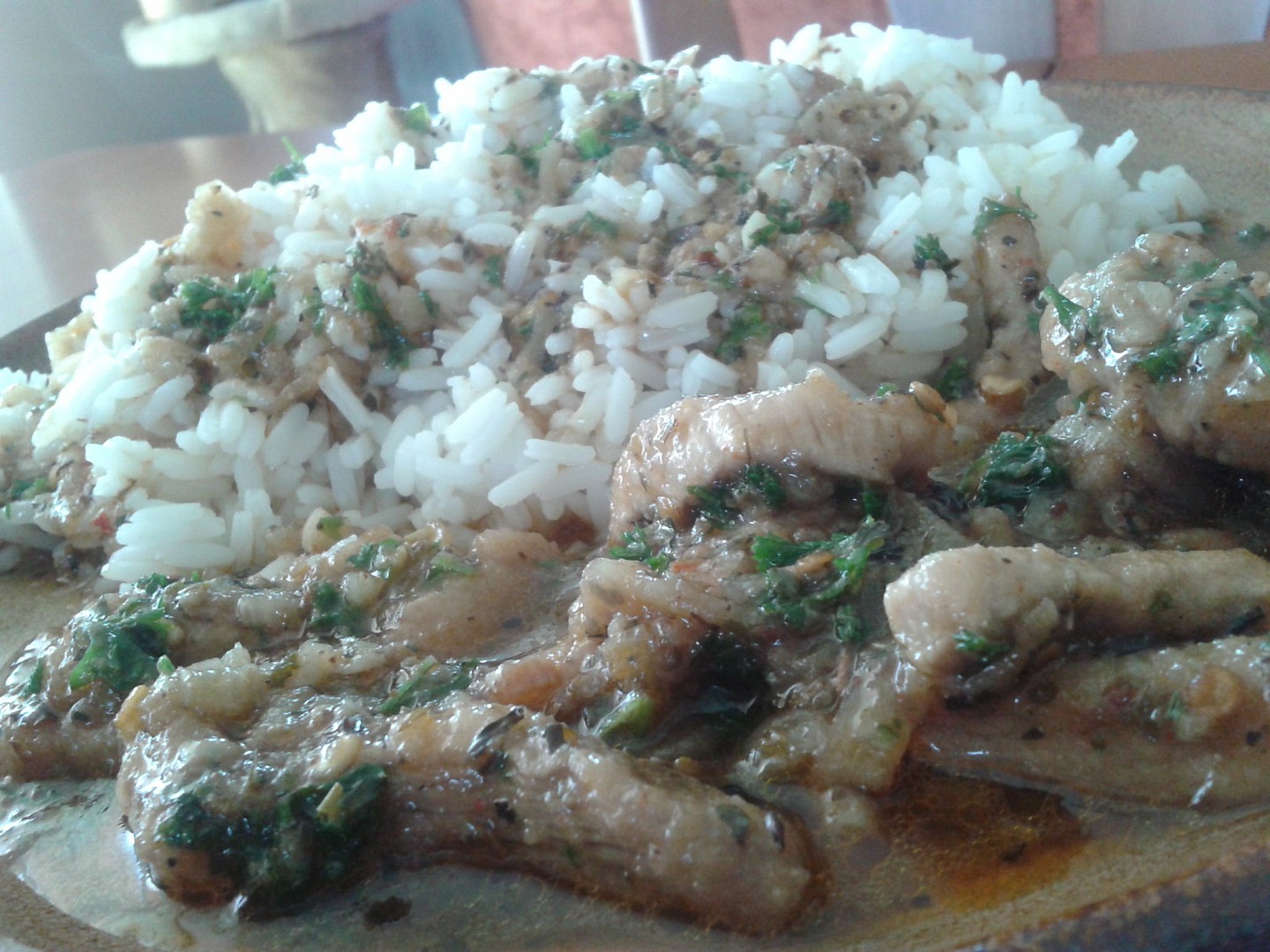 3. Poté zalijeme vývarem nebo vhodíme kostku s trochou vody. Šťáva se sama zahustí krátkým dušením (10 minut). Nakonec přidáme nakrájenou čerstvou petrželku.