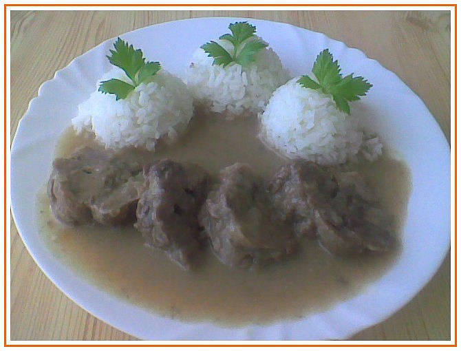 6. Z roládek odmotáme nit, nakrájíme na plátky, dáme na talíř a přelijeme šťávou. Podáváme s rýží, nebo s kuskusem.