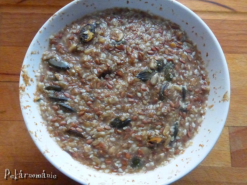 Semínka, která chceme přidat do zápary, spařujeme všechna, mouky (z receptu) do zápary dáme 20-30% .
