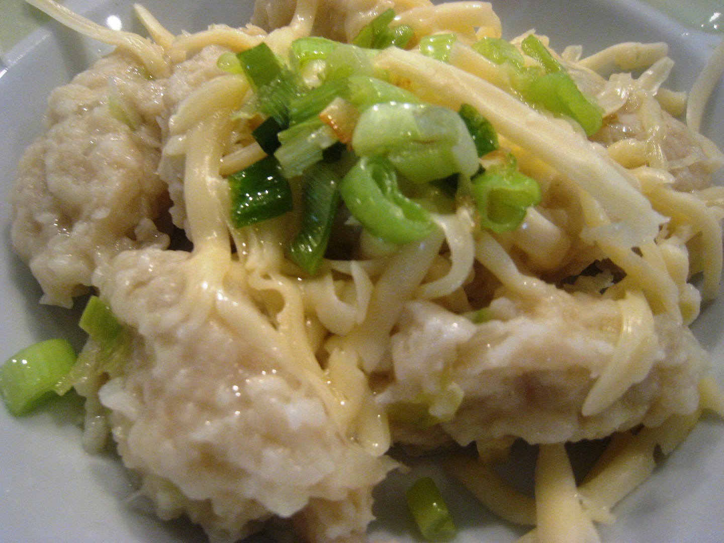 Ocedíme a na tanieri posypeme bohato strúhaným syrom a opraženou cibuľkou a slaninkou.