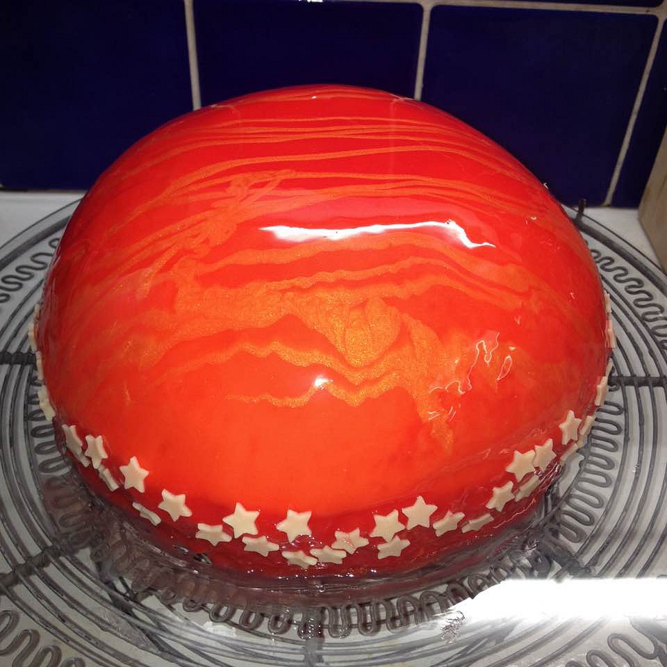 Tahle zrcadlová poleva se hodí na polévání hladkých želatinových dortů, například z ovocné pěny nebo čokoládové pěny nebo na dorty potřené krémem a dobře vychlazené. Podobnou polevu používá Olga Nosková, známá ruská cukrářka, jejíž výtvory jsou k vidění na Youtube.